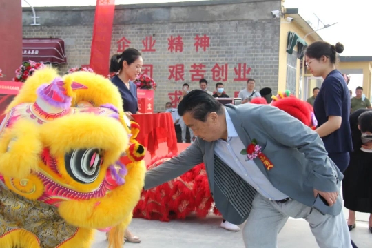活動(dòng)現(xiàn)場(chǎng)人聲鼎沸,彩旗飄揚(yáng),洋溢著喜氣氛圍,黑馬集團(tuán)董事長(zhǎng)劉玉江為舞獅點(diǎn)睛。