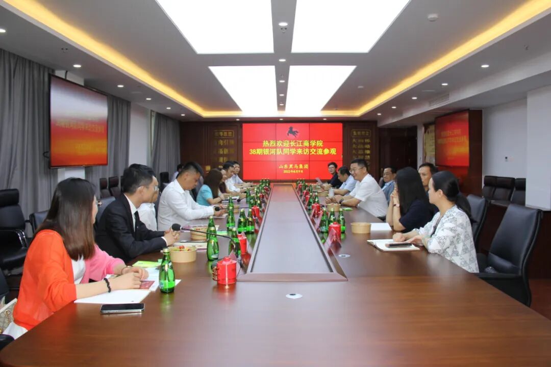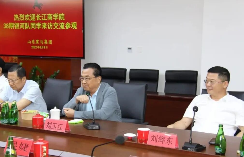 022年8月9日,山東黑馬集團(tuán)執(zhí)行董事長(zhǎng)、總裁劉輝東的長(zhǎng)江商學(xué)院38期銀河隊(duì)企業(yè)家同學(xué)一行10余人來(lái)山東黑馬集團(tuán)參觀考察。山東黑馬集團(tuán)董事長(zhǎng)劉玉江等董事會(huì)成員參加考察座談會(huì)。