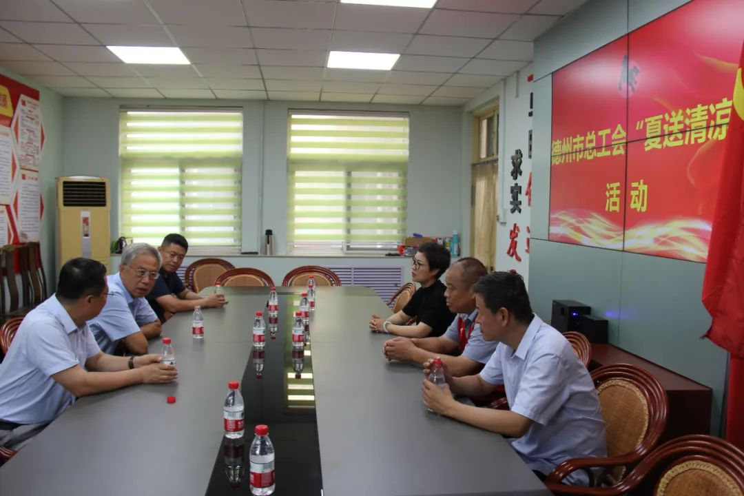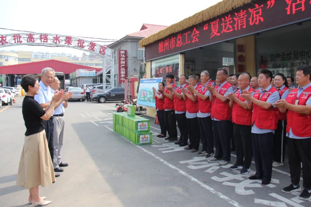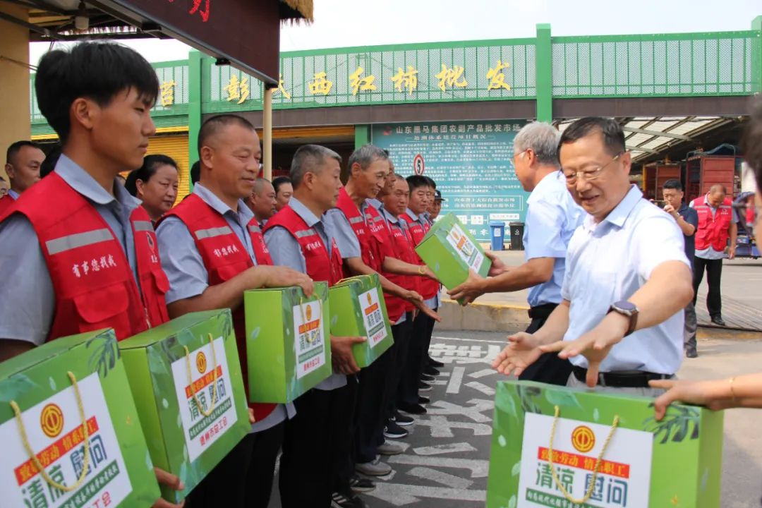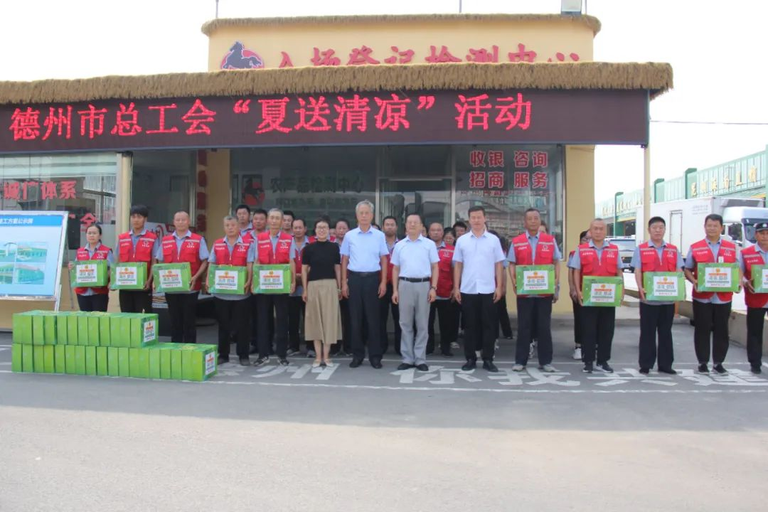 8月1日,德州市總工會二級調(diào)研員孫剛,民管部長英波一行來黑馬農(nóng)批市場開展2023年“夏送清涼”活動,慰問工作在一線的企業(yè)職工。山東黑馬集團(tuán)黨委書記、執(zhí)行總裁劉揮進(jìn),工會主席、副總裁李華,工會副主席、辦公室主任張曙光參加。