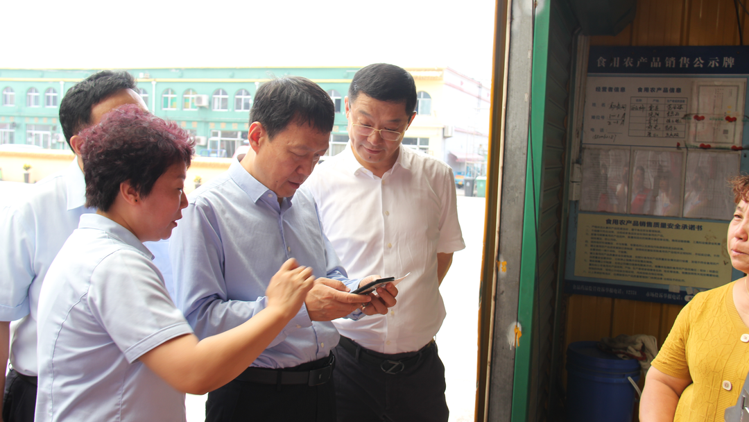 楊軍行長一行走訪市場及商戶,向業(yè)戶詢問經(jīng)營情況,詳細了解了追溯秤使用情況