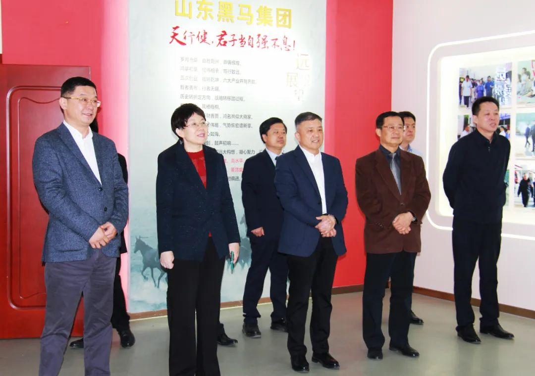 梁建副廳長一行觀看了黑馬集團退役軍人專題宣傳片,實地參觀了黑馬集團榮譽展廳,詳細聽取了黑馬集團經營發(fā)展及董事長劉玉江創(chuàng)業(yè)歷程。