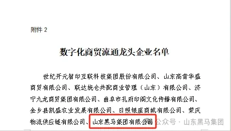 近日,山東省商務(wù)廳公布了第二批全國“縣域商業(yè)領(lǐng)跑縣”、首批全國農(nóng)村電商“領(lǐng)跑縣”等名單及典型案例。山東黑馬集團(tuán)有限公司入選商務(wù)部數(shù)字化商貿(mào)流通龍頭企業(yè)典型案例。
