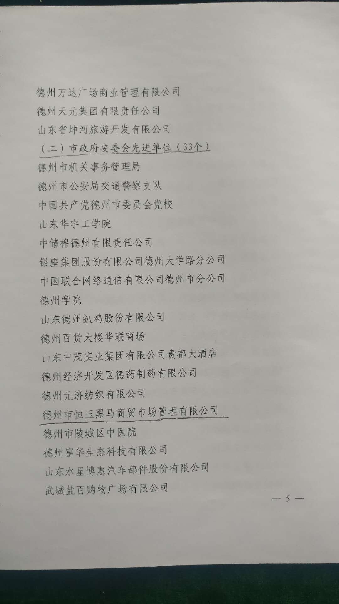 近日,黑馬商貿(mào)市場因出色的安全管理,受到了德州市人民政府安全生產(chǎn)委員會(huì)的表彰,被評為“市政府安委會(huì)先進(jìn)單位”。黑馬商貿(mào)市場負(fù)責(zé)人賀鵬被評為“市政府安委會(huì)先進(jìn)個(gè)人”。