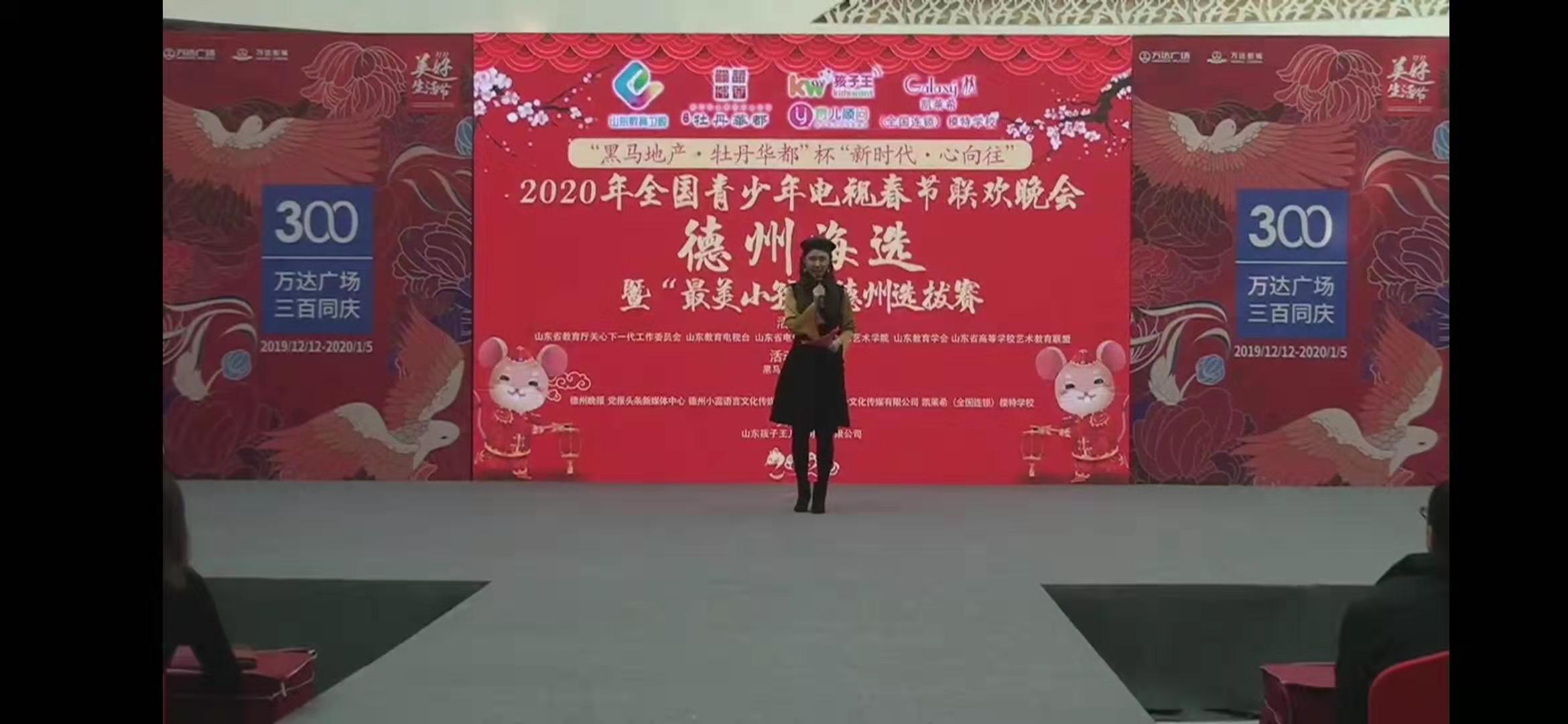 為展示新時(shí)代青少年的良好精神風(fēng)貌和文化藝術(shù)水平,在春節(jié)期間為全國(guó)觀眾帶來(lái)精彩的藝術(shù)視覺(jué)盛宴,12月1日,“黑馬地產(chǎn)·牡丹華都”杯“新時(shí)代·心向往”2020年全國(guó)青少年電視春節(jié)聯(lián)歡晚會(huì)德州海選暨“最美小孩”德州選拔賽在德州萬(wàn)達(dá)廣場(chǎng)閃耀啟幕。