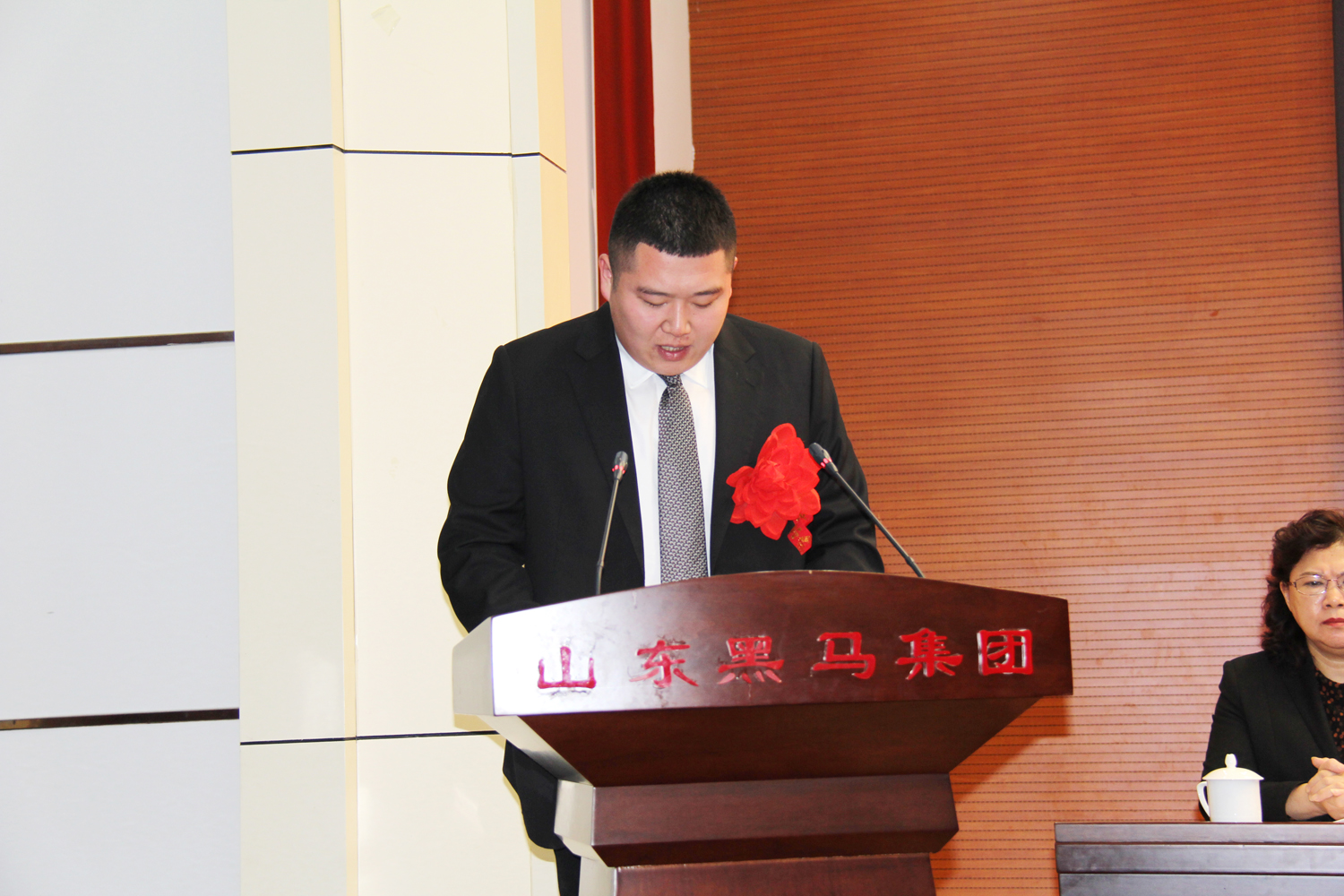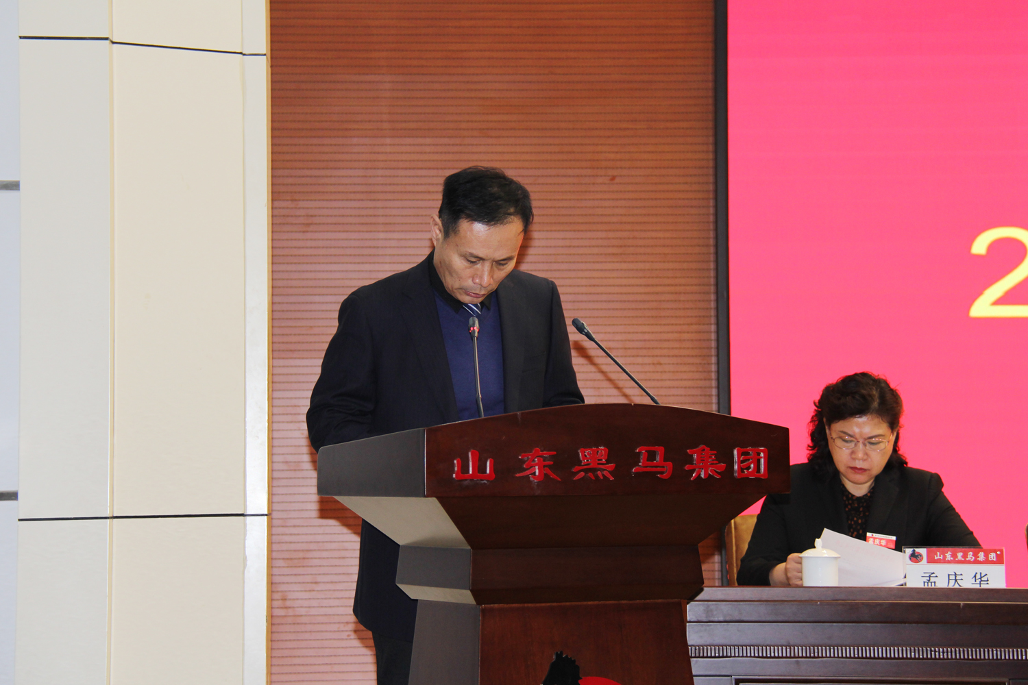 執(zhí)行總裁楊青東宣讀《山東黑馬集團(tuán)關(guān)于表彰二〇一九年度先進(jìn)單位和先進(jìn)個(gè)人的決定》