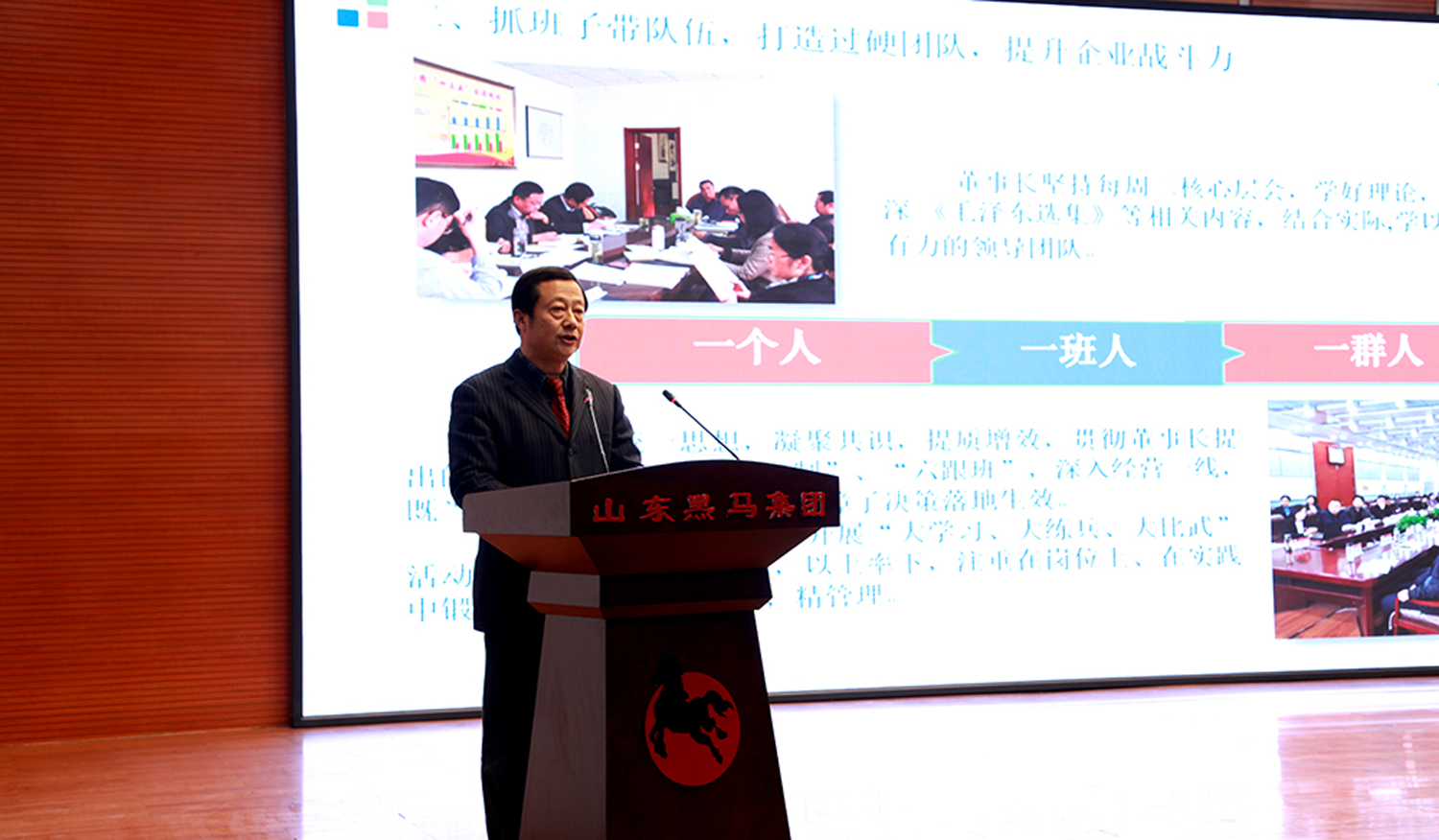 執(zhí)行總裁劉揮進(jìn)宣讀《山東黑馬集團(tuán)2019年度工作總結(jié)》